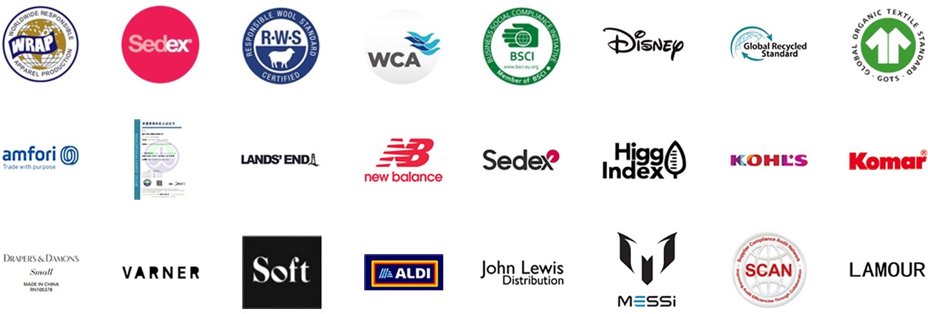 The company has good qualifications and has obtained EU certifications: BSCI, SEDEX, WRAP, GRS and ISO9001 certification. The company is also a member of WOOLMARK.